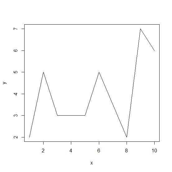 x<−c(2,5,3,NA,3,5,NA,2,7,6) plot(x,type="l")