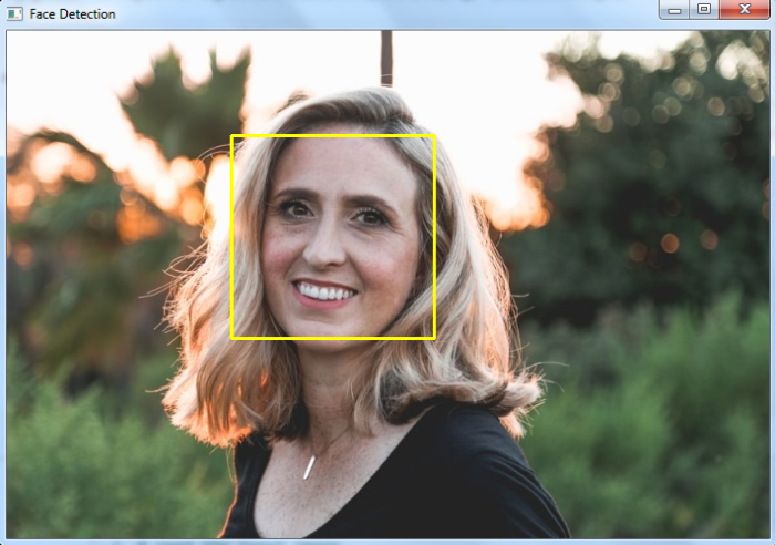 In this Python program, we detect a face and draw a bounding box around the detected face.
