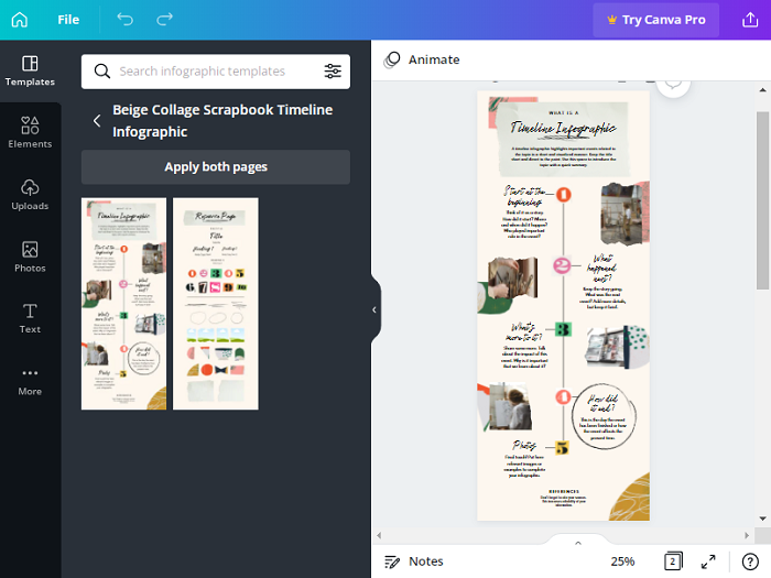 Format the template according to your purpose using the options available on the left pane of the workspace. If you want to change the template of all the pages, select Apply all pages from the side panel and the template for all the pages in the design will change.