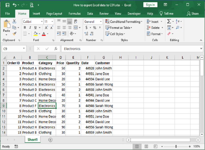 Step 1: Open the Excel file containing the data you want to export. Select the worksheet that you want to export. Here my worksheet looks like this.