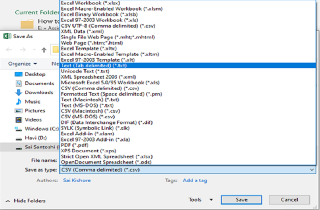 Step 2: Click on the "File" tab in the top?left corner of Excel. Choose "Save As" from the menu. In the "Save As" dialog box, navigate to the location where you want to save the CSV file. In the "Save as type" dropdown, select "Text (Tab delimited) (*.txt)".