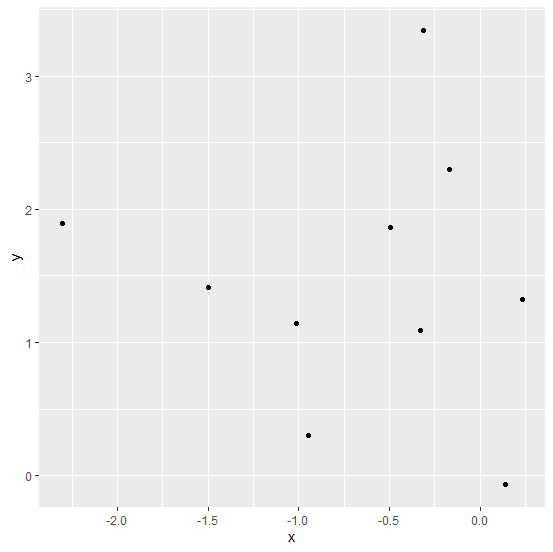 set.seed(111) x <-rnorm(10) y <-rnorm(10,1.5) df <-data.frame(x,y) df