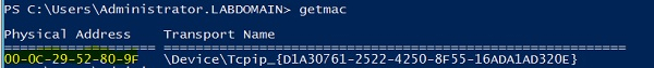 Using GetMac command