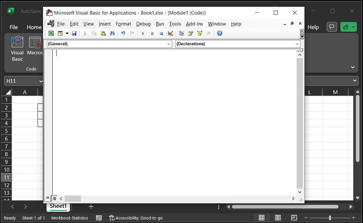 The above step will open a "Microsoft Visual Basic for Applications" dialog box. This dialog box open as a blank. Go open the code editing window. Go to the "Insert" option, and then choose "Module" option. Consider be