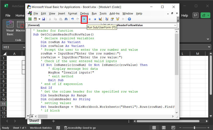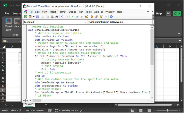 The available article contains a single example to demonstrate the use of VBA code to execute the results. This example is based on the use of the VBA code. VBA code is an important practice and is used precisely once the user will be able to execute the code without any error. This article contains a stepwise explanation for all the steps. All the provided snapshots are clear and precise. Comments are well described within the code, to ensure that the user will be able to understand the code processing for all steps.