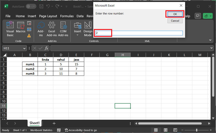 The above step will open the below given code window. Here, user need to input the row number where data needs to be searched. In this example, will enter 2, to generate the required output results. Finally, click on "OK" button.