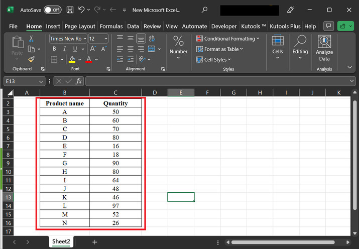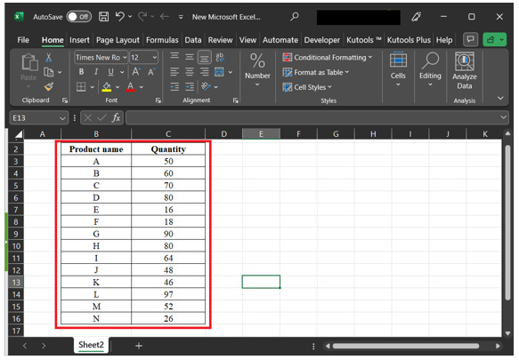 In this example, users will understand the process of evaluating unique values. This excels sheet stores the name of a few products along with the quantities. A snapshot of the same is provided below: