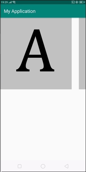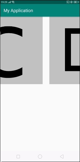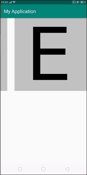 <?xml version="1.0" encoding="utf-8"?> <LinearLayout xmlns:android="http://schemas.android.com/apk/res/android" android:layout_width="match_parent" android:id="@+id/layout" android:layout_height="match_parent"> <HorizontalScrollView android:layout_width="match_parent" android:layout_height="300dp"> <LinearLayout android:layout_width="match_parent" android:layout_height="match_parent"> <ImageView android:layout_width="300dp" android:background="#c1c1c1" android:layout_height="match_parent" android:src="@drawable/a"/> <ImageView android:layout_width="300dp" android:background="#c1c1c1" android:layout_height="match_parent" android:layout_marginLeft="30dp" android:src="@drawable/b"/> <ImageView android:layout_width="300dp" android:background="#c1c1c1" android:layout_height="match_parent" android:layout_marginLeft="30dp" android:src="@drawable/c"/> <ImageView android:layout_width="300dp" android:background="#c1c1c1" android:layout_height="match_parent" android:layout_marginLeft="30dp" android:src="@drawable/d"/> <ImageView android:layout_width="300dp" android:background="#c1c1c1" android:layout_height="match_parent" android:layout_marginLeft="30dp" android:src="@drawable/e"/> </LinearLayout> </HorizontalScrollView> </LinearLayout>
