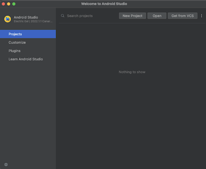 Navigate to Android studio as shown in below screen. In the below screen click on New Project to create a new Android Studio Project.