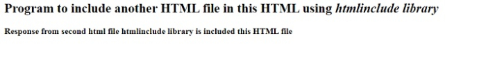 In this section, we shall check how to use the htmlinclude library to include an HTML file.