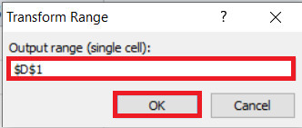 In the dialog box, select the range from A1 to C5 and enable the option Range to single column then click on the ok button. It will open the pop-up window that will ask for the output range. Select any cell select any cell where we have to merge the columns in one column then it will open the pop-up window. In this window click on the ok button that will merge the two columns into one as shown below.