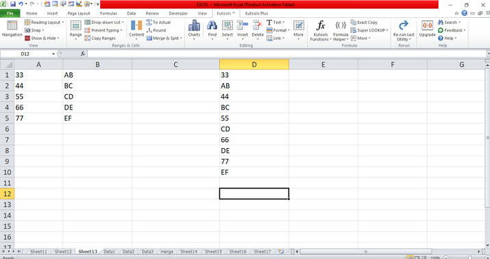 Example 2: Merge two columns into one with alternating values by using Ku-tools