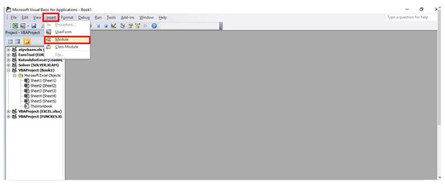 In the sheet, place the cursor in any cell and go to the ribbon. In the ribbon, there are many tabs included in the top corner. Place the cursor in the Developer tab and click on the tab that has many options included. On the Developer tab, place the cursor and click on the Visual Basic Applications tab in the Code group which will open the VBA. On this window, there are many tabs in the ribbon. Place the cursor and click on the Insert tab which has many options. Click on the Module tab that opens the coding window which the users have to make a program to hide all the worksheets except the active sheet as shown below.