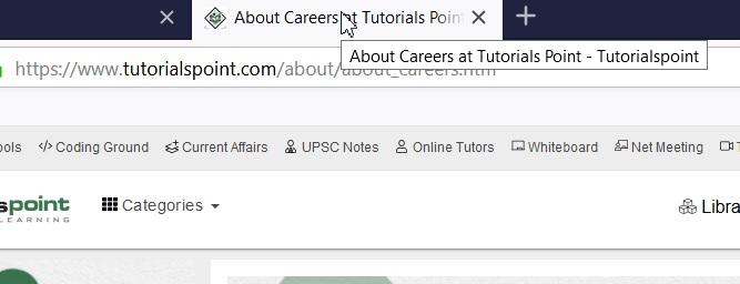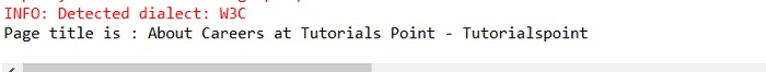 Let us find the title of the current page. We shall get About Careers at Tutorials Point – Tutorialspoint as output.