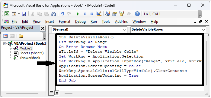 Here, we will first create a VBA module and then run it to complete the task. So let us see a simple process to learn how you can only delete visible rows or columns in Excel.