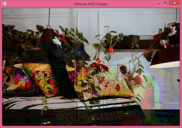 # import required libraries import cv2 # read two input images. # The size of both images must be the same. img1 = cv2.imread('lamp.jpg') img2 = cv2.imread('jonathan.jpg') # compute bitwise AND on both images and_img = cv2.bitwise_and(img1,img2) # display the computed bitwise AND image cv2.imshow('Bitwise AND Image', and_img) cv2.waitKey(0) cv2.destroyAllWindows()