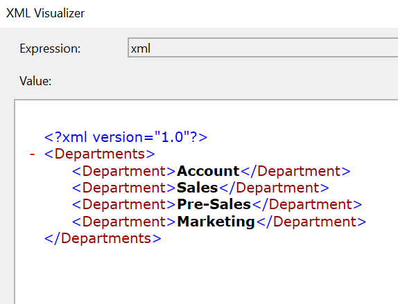 Similarly, if we want to convert a file containing xml to XDocument we can use XDocument.Load(path).