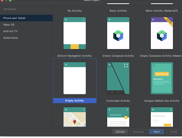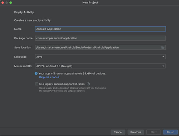 Inside this screen we have to simply select Empty Activity and click on Next. After clicking on next you will get to see the screen below.