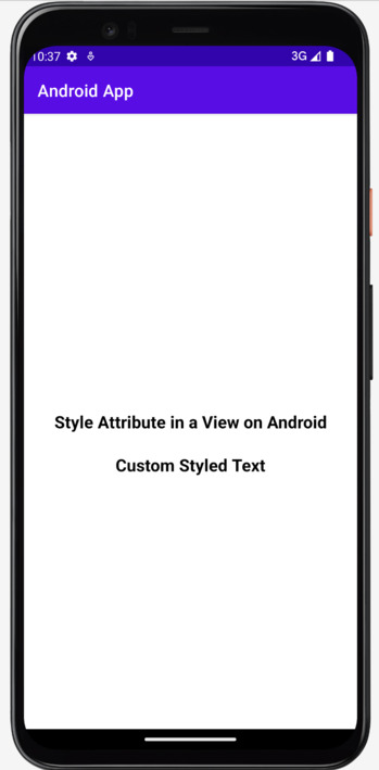 Explanation : In the above code firstly we are creating variables for our text view on which we have to set the style. Now we will get to see the onCreate method. This is the default method of every android application. This method is called when the application view is created. Inside this method we are setting the content view i.e the layout file named activity_main.xml to set the UI from that file. Inside this onCreate method we are initializing the variable for the text view with the id which we have given in our activity_main.xml file. After that we are setting the style for our text view by calling text appearance method.