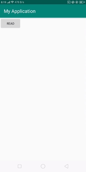 <?xml version = "1.0" encoding = "utf-8"?> <manifest xmlns:android = "http://schemas.android.com/apk/res/android" package = "com.example.andy.myapplication"> <uses-permission android:name = "android.permission.WRITE_EXTERNAL_STORAGE"/> <uses-permission android:name = "android.permission.READ_EXTERNAL_STORAGE"/> <application android:allowBackup = "true" android:icon = "@mipmap/ic_launcher" android:label = "@string/app_name" android:roundIcon = "@mipmap/ic_launcher_round" android:supportsRtl = "true" android:theme = "@style/AppTheme"> <activity android:name = ".MainActivity"> <intent-filter> <action android:name = "android.intent.action.MAIN" /> <category android:name = "android.intent.category.LAUNCHER" /> </intent-filter> </activity> </application> </manifest>
