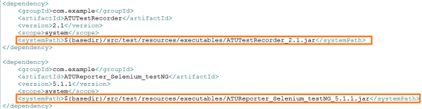 ATUTestRecorder.jar and ATUReporter_Selenium_testNG.jar files need to be downloaded and saved within the project folder.