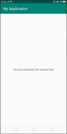 <?xml version = "1.0" encoding = "utf-8"?> <LinearLayout xmlns:android = "http://schemas.android.com/apk/res/android" android:id = "@+id/parent" xmlns:tools = "http://schemas.android.com/tools" android:layout_width = "match_parent" android:layout_height = "match_parent" tools:context = ".MainActivity" android:gravity = "center" android:orientation = "vertical"> <TextView android:id = "@+id/text" android:textSize = "18sp" android:textAlignment = "center" android:text = "remove shadow for action bar" android:layout_width = "match_parent" android:layout_height = "wrap_content" /> </LinearLayout>