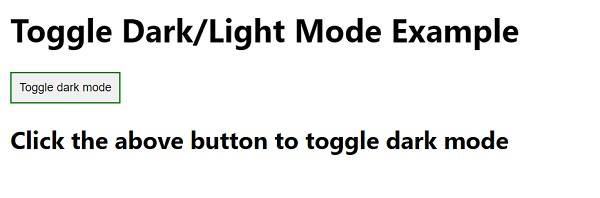 To switch between dark and light mode with JavaScript, the code is as follows −