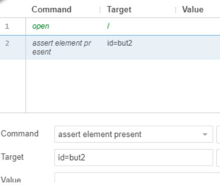 assert element present − Verifies if the element exists on the page. If assertion fails, the test terminates. It has the element locator as an argument.