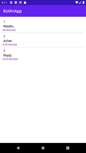arrayList.add(MyData(3, " Niyaz", "65757657657"))