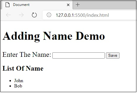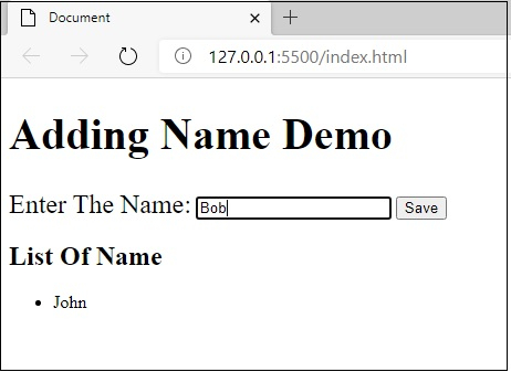 Again, I entered the name ‘Bob’. Now, the updated output is as follows −
