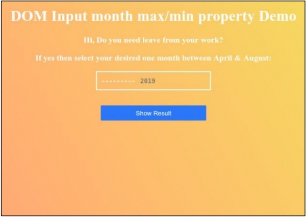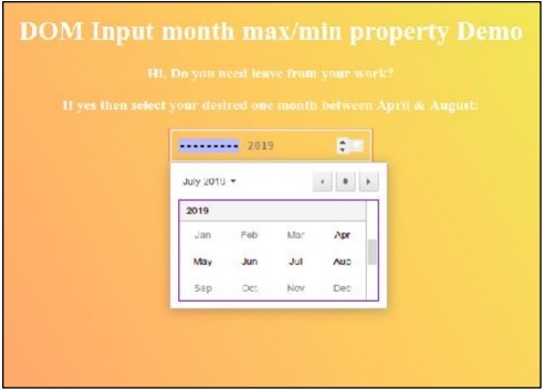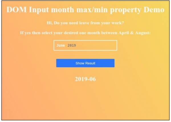 <h1>DOM Input month max/min property Demo</h1>