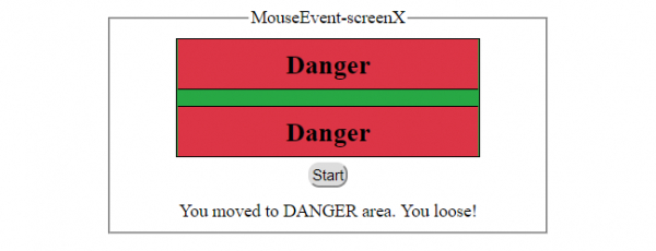 divDisplay.textContent = 'You moved to DANGER area. You loose!';