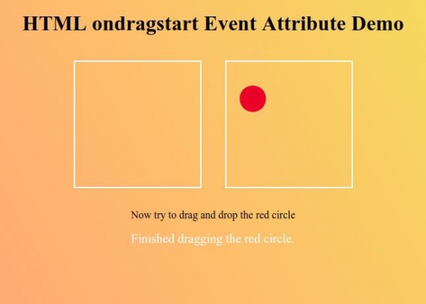Now try to drag and drop the red circle between the two boxes to observe how ondragstart event attribute works−