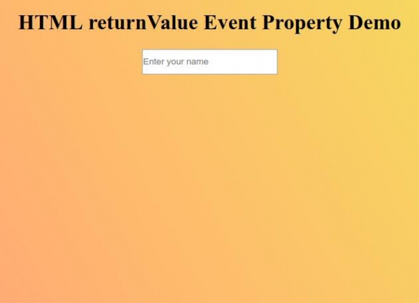Now try to enter value in the input field to make it focus so as to display the value of returnValue event property.