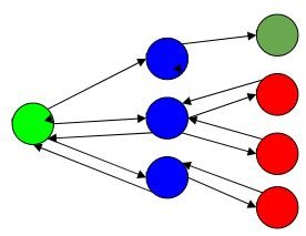 In the above figure, green is the start point, blue is the intermediate point, red are points with no feasible solution, grey is the end solution.