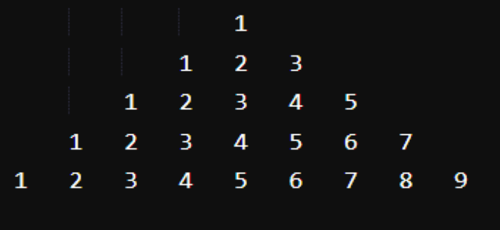 In this pattern, we will initialize three variables: n = 5, spc = n-1, and col = 1. Then, a for loop is used to control the number of rows. Inside the loop, a second for loop is used to print spaces between the numbers. After the space loop, the "spc" variable is decremented by 1, and another loop is used to print numbers. After the number loop, the "col" variable is incremented by 2, and a new line is printed. The process continues until the pyramid pattern is printed with increasing numbers from 1 to 9 in the pyramid form.