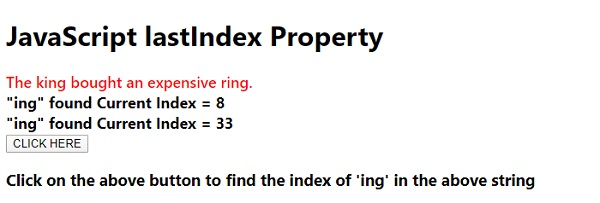 resultEle.innerHTML +='"ing" found Current Index = ' + regex.lastIndex + "<br>";