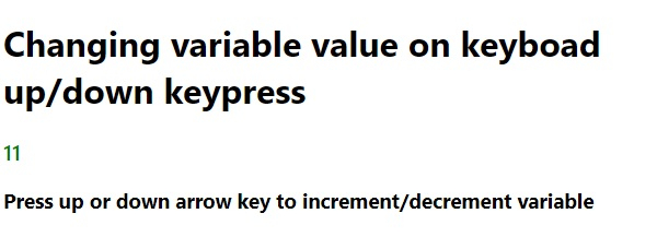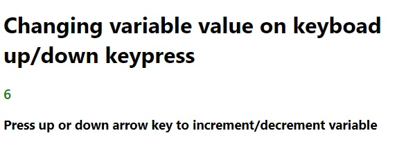 In this article, we have created a program that gets a variable to count up/down on keyboard press. In this article, we have seen two methods for creating this program: keyup and keydown keyboard events. Both events are easy to use and work efficiently.
