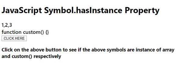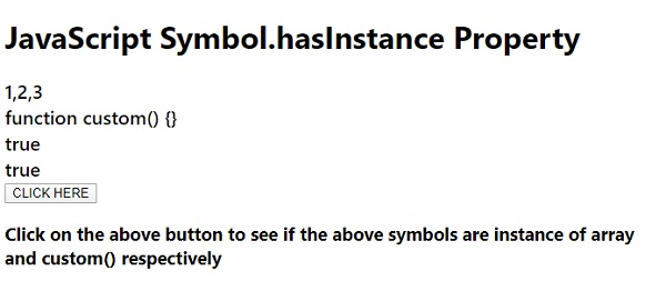 <h3> Click on the above button to see if the above symbols are instance of array and custom() respectively</h3>