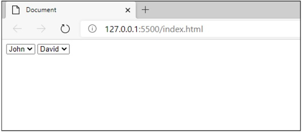<select name="all_name" id="all_present_name"> <option value="John">John</option> <option value="David">David</option> <option value="Bob">Bob</option> <option value="Mike">Mike</option> <option value="Sam">Sam</option> <option value="Carol">Carol</option> </select>