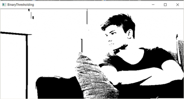 Thresholding is a process in which the value of each pixel is changed in relation to a threshold value. The pixel is given a certain value if it is less than the threshold and some other value if it is greater than the threshold. In binary thresholding, if the value of the pixel is less than the threshold, it will be given a 0 value, i.e., black. If it is greater than the threshold, it will be assigned 255, i.e., white.
