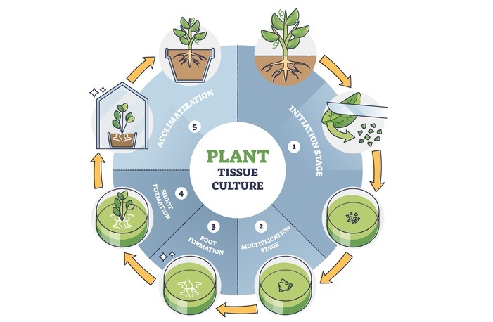 Plant tissue culture involves the use of sterile techniques to isolate plant cells, tissues, or organs and grow them under controlled conditions in the laboratory. The plant material is first sterilized using a combination of chemical and physical methods to remove any microorganisms that may be present on the surface of the plant.