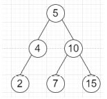 root = TreeNode(5) root.left = TreeNode(4) root.left.left = TreeNode(2) root.right = TreeNode(10) root.right.left = TreeNode(7) root.right.right = TreeNode(15)
