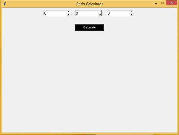 In this article, we will see how to create a functional application that calculates the ratio. In order to make it fully functional, we will use SpinBox method that generally creates an ideal spinner for a value. This value can be modified using the spinner widget in the frame. Thus, a SpinBox object takes values in the range from minimum to maximum.