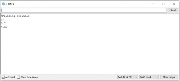 Often some functions can output really long floating-point numbers, with several decimal digits. Several times, we are just interested in the first couple of decimal digits, and the remaining digits just reduce the readability and make the Serial Monitor window cluttered.