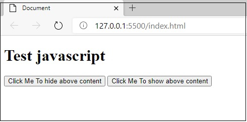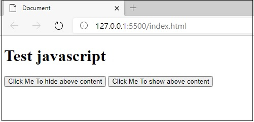 When you click on the button “Click Me To hide above content”, you will get the following output.