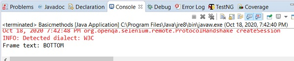 Syntax − driver.switchTo().defaultContent()