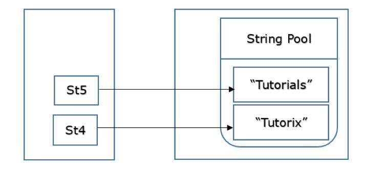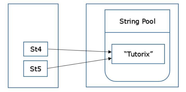 But, If we initialize the st5 to "Tutorix" then JVM doesn't create new object for it. It points the older value to the ?st5'.