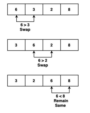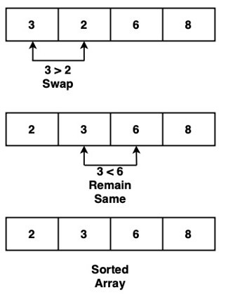 Step 3 ? Check if array[y]>array[y+1]. If yes, then swap the position of the elements without each other. If no, then move to next pair.