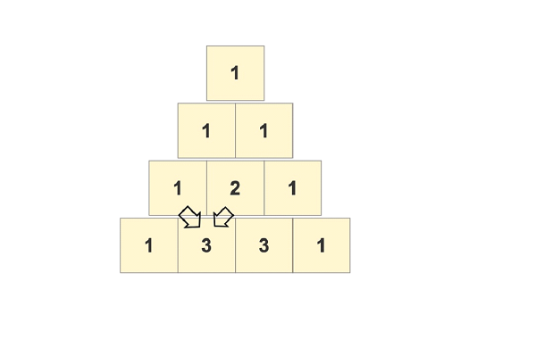 A pascal's triangle is a triangular array of the binary coefficient. It is a never ending equilateral triangle which always follows the rule of adding two numbers from the above row to get the number of below row. For example, the initial number of first row is 1 so the number of 2nd row is the sum of two numbers of the 1st row that are 0+1 and 1+0, so we get [1, 1]. Now the number of 3rd rows is the sum of the two numbers of the 2nd row that are 0+1, 1+1, 1+0, so we get 3rd row [1, 2, 1] and so on?